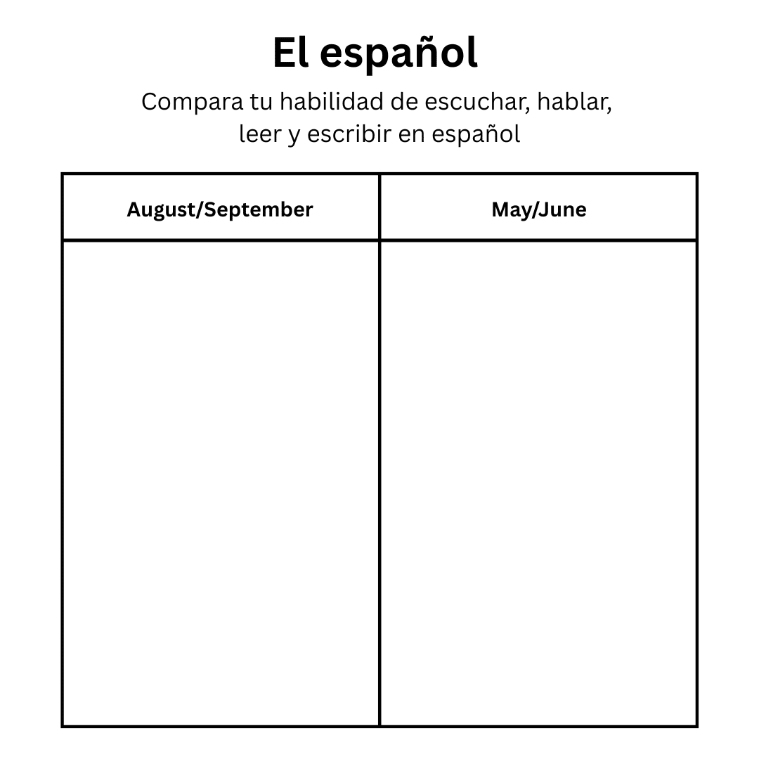 The example above is for Spanish, however, you should do this in English as well. You could also create a chart with Spanish on one side and English on the other side. The point is allowing students to reflect on their trajectory of bilingualism and biliteracy honors the work they've been doing all school year.