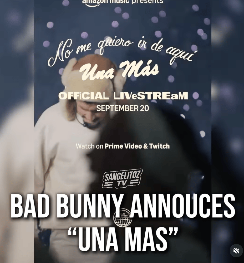 Bad Bunny is adding one more concert to the residency he just wrapped up in Puerto Rico. Tickets will be sold for Puerto Rican residents only, however the concert will also be livestreamed. You can catch the show this Saturday, September 20 at 8:30 EST on Prime Video , Amazon Music app & Twitch. Read more HERE.